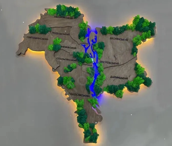 Дерев«яна карта міста чудово впишеться в інтер«єр будь-якого офісу чи будинку і приверне увагу кожного своїм стилем та якістю виконання. Більше 60 варіантів кольорів та можливість індивідуально її стилізувати - позначками, написом, логотипом тощо. Купуючи мапу міста, Ви отримаєте якісну та оригінальну продукцію від українського виробника FACTURA.