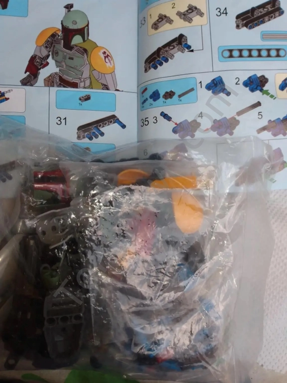 Сборка конструктора простая, вначале собирается крупноузловой несущий костяк, затем на него крепятся детали внешнего контура - шлем, броня, наплечники, и другие.