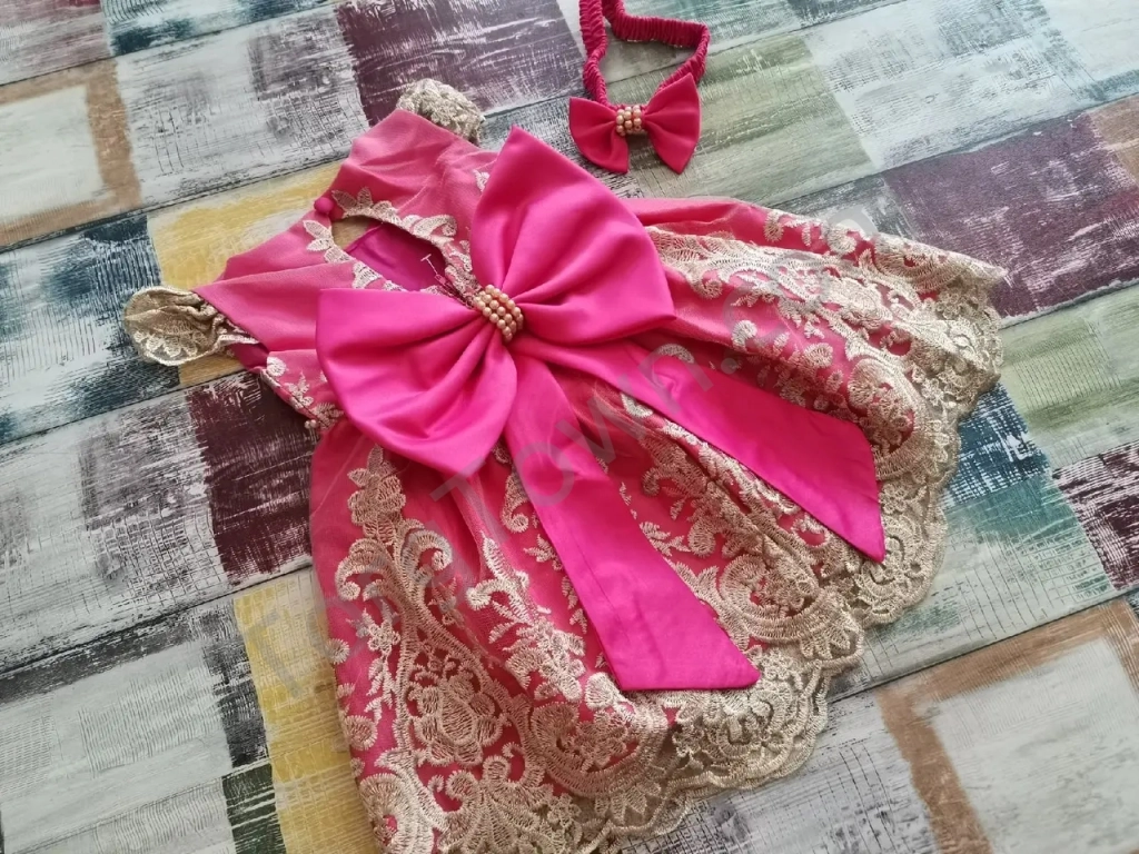 Пишна сукня з багатою вишивкою. Верх сукні - атлас з мереживом. Спідниця - 2 шари фатину, атласний і шифоновий під'юбник, євросітка. На спинці застібається на 1 гудзик. Бант чипляється на безпечній шпильці.