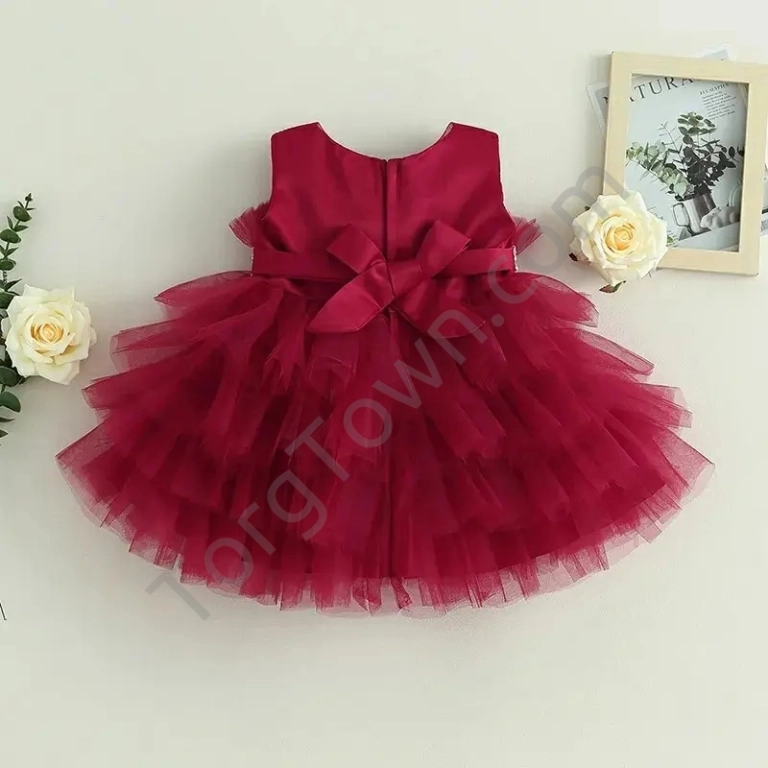 Чарівне плаття для дівчинки на 1-3 роки. Легкі фатинові рюші надають пишності та легкості сукні. Всередині топа до тіла є бавовняна підкладка. На спині зав'язується поясок.