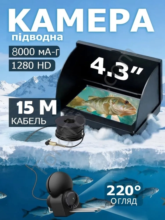 Професійна HD-підводна камера для рибалки з монітором 4.3« та кабелем 15 м – повний комплект