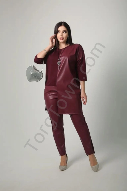 Комбінований костюм двійка: лосини + туніка Розміри: 48-50, 52-54, 56-58, 60-62 Тканина: двонитка + екошкіра Кольори: чорний, шоколад, смарагд Лосини зручні, з поясом на резинці. Кофта: 48-50: ОГ 108, ОС 108, Довжина туніки 60/80 см, Рукав від горловини 56 см 52-54: ОГ 114, ОС 116, Довжина туніки 60/80 см, Рукав від горловини 58 см 56-58: ОГ 122, ОС 124, Довжина туніки 60/80 см, Рукав від горловини 60 см 60-62: ОГ 130, ОС 132, Довжина туніки 60/80 см, Рукав від горловини 62 см Лосини: 48-50: ОТ 76, ОС 106, Довжина 102 см 52-54: ОТ 82, ОС 114, Довжина 102 см 56-58: ОТ 90, ОС 120, Довжина 102 см 60-62: ОТ 98, ОС 128, Довжина 102 см